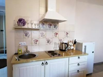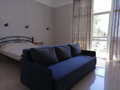 очень рекомендую! 1. Расположение - рядом все красивые места Алупки, магазины, остановки. все в пешей доступности. 5-10 мин. Остановка -1 мин 2. Номер - как красивая квартира с видом на горы, тихо, спокойно, отдельно от всех. Бассейн рядом. Парковка есть в отличие от всех других мест 3. Завтраки - вкусные, хотя и скромные. Каждый день круассаны. Для разнообразия можно добавить каши, запеканки, сыры, нарезки разные, масло. Этого очень не хватало. И кофе, можно было включить в завтрак, так как цена за сутки не низкая. Очень понравилось льняное постельное белье!
