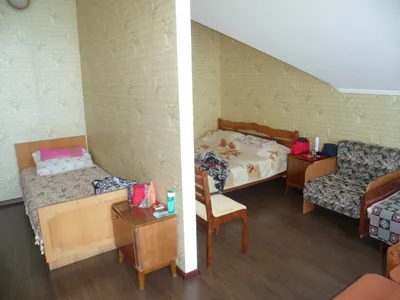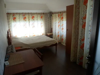 Номер 2 - Четырёхместный номер с удобствами и балконом, площадь 25 кв. м., доплата за каждое дополнительное место 500 рублей в сутки; в номере сан. узел+душ; мебель: двуспальный диван-кровать, 2 односпальные кровати, стулья, шкаф, стол, оборудование: холодильник, цифровое тв, Wi-fi,кондиционер, сейф. Стоимость номера за сутки: декабрь, январь, февраль - 4000 рублей; март, апрель, ноябрь -4100 рублей; май, сентябрь, октябрь - 4200 рублей; июнь, июль, август - 4300 рублей