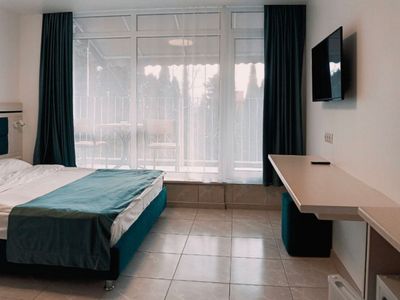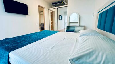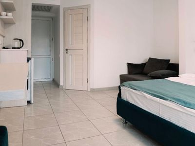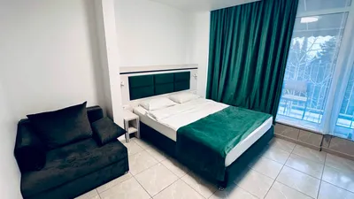 Современный номер, относительно большая территория для Алупки. Чистое новое бельё. Пляж далековато, но это везде так. Отдыхом довольны