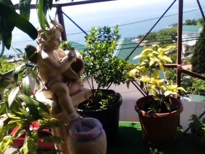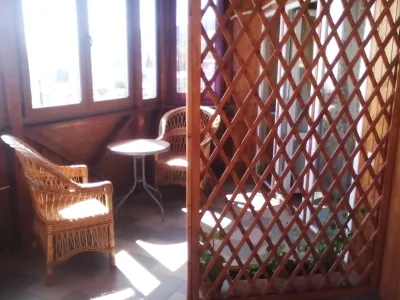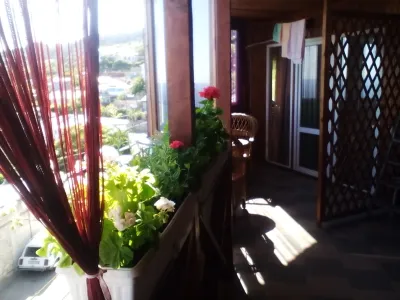 Номера со всеми удобствами на 2,3,4 человека с видовыми крытыми террасами, вид на море, на всю Алупку, из номеров второго этажа вид также на север, на гряду Крымских гор.